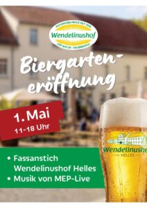 Wendelinushof eröffnet Biergarten mit Fassanstich… Das Wendelinushof Helle ist ab sofort im Restaurant „Hofküche“ im Ausschank! Neues Ausflugsziel am 1. Mai: Wendelinushof eröffnet Biergarten mit